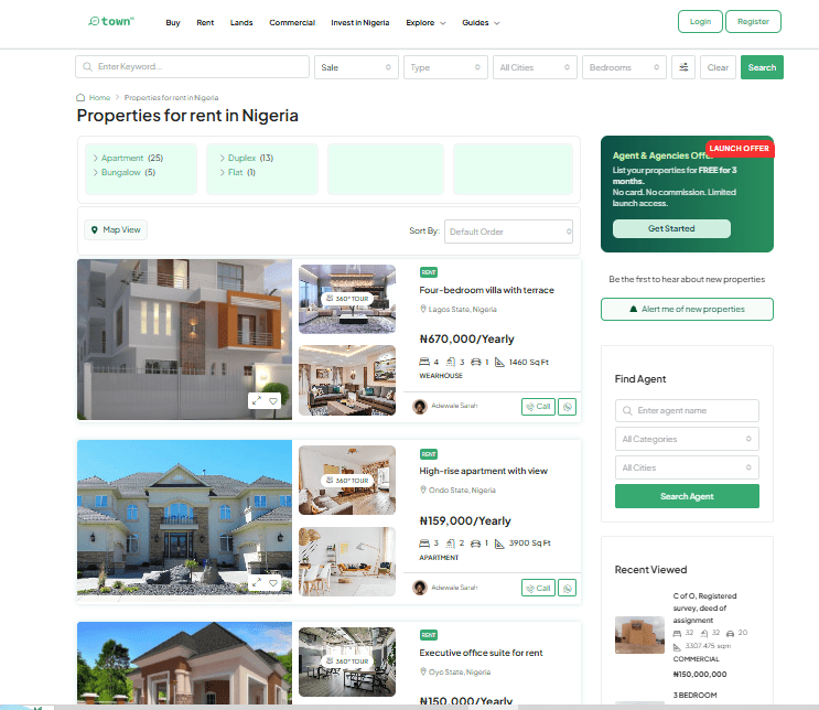 Project Overview We designed and developed Town NG, a large-scale real estate marketplace platform in Nigeria that connects buyers, sellers, landlords, tenants, and agents with verified properties and agencies. The project also includes fully integrated mobile applications to extend accessibility and engagement across devices.