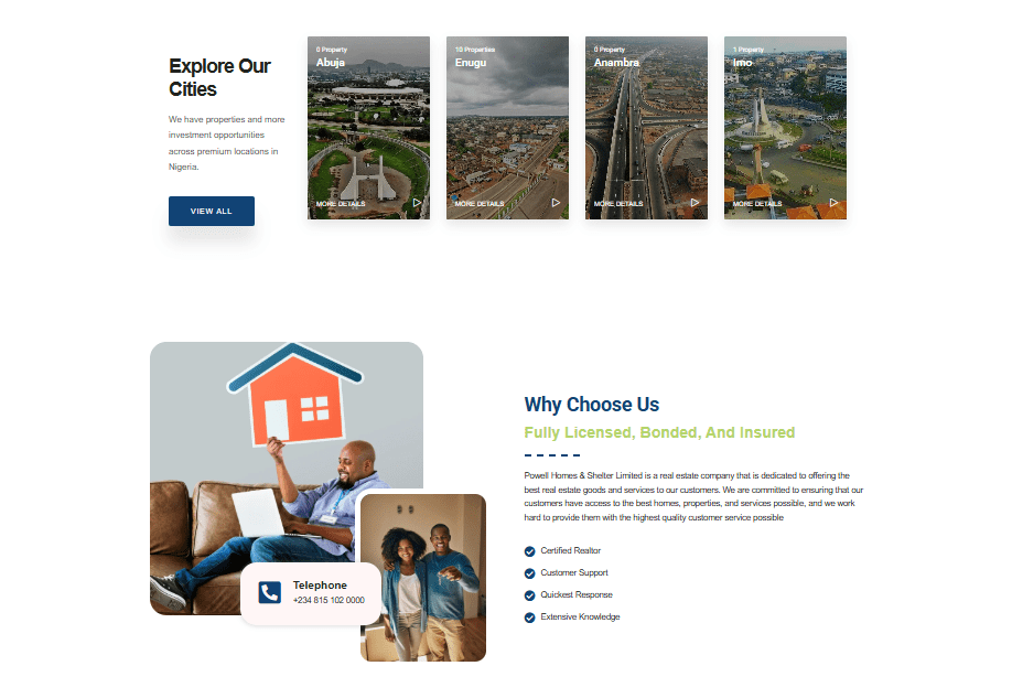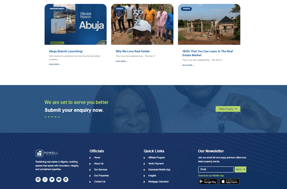 We designed and developed a modern real estate marketplace website that allows Powell Homes to manage properties, agents, and branches across multiple locations.